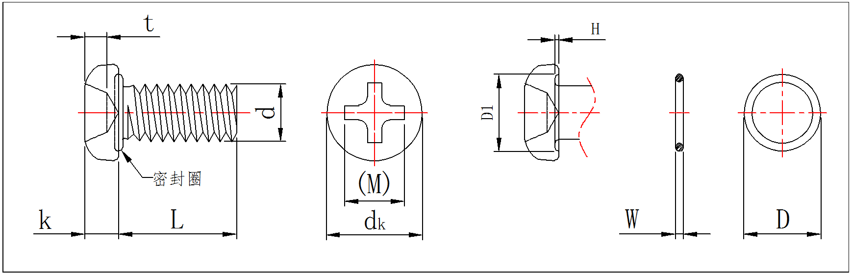 pan cross recessed waterproof screw with rubber washer