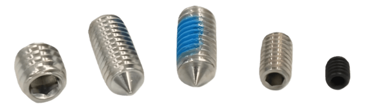 • Flat set screws apply uniform compressive stress distribution at the interface, minimizing surface penetration while offering reduced rotational resistance compared to profiled tips.
